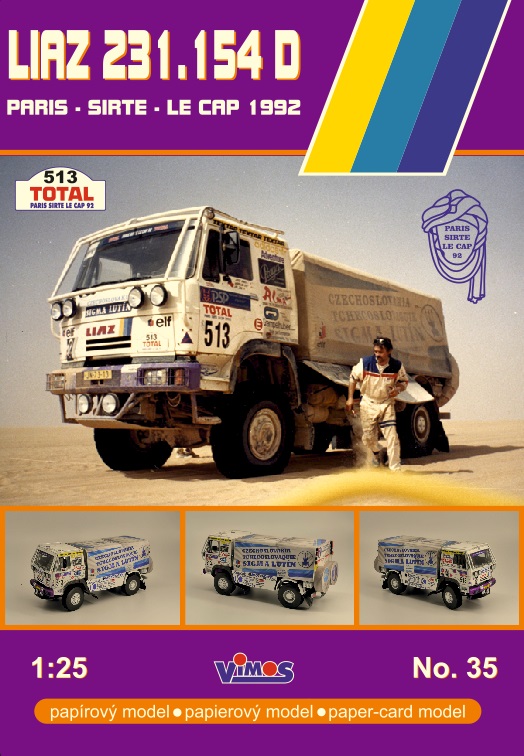 Papírový model kamionu Liaz z Rallye Paříž - Kapské Město, posádka Josef Kakrda, Jaroslav Joklík, Jiří Žák.