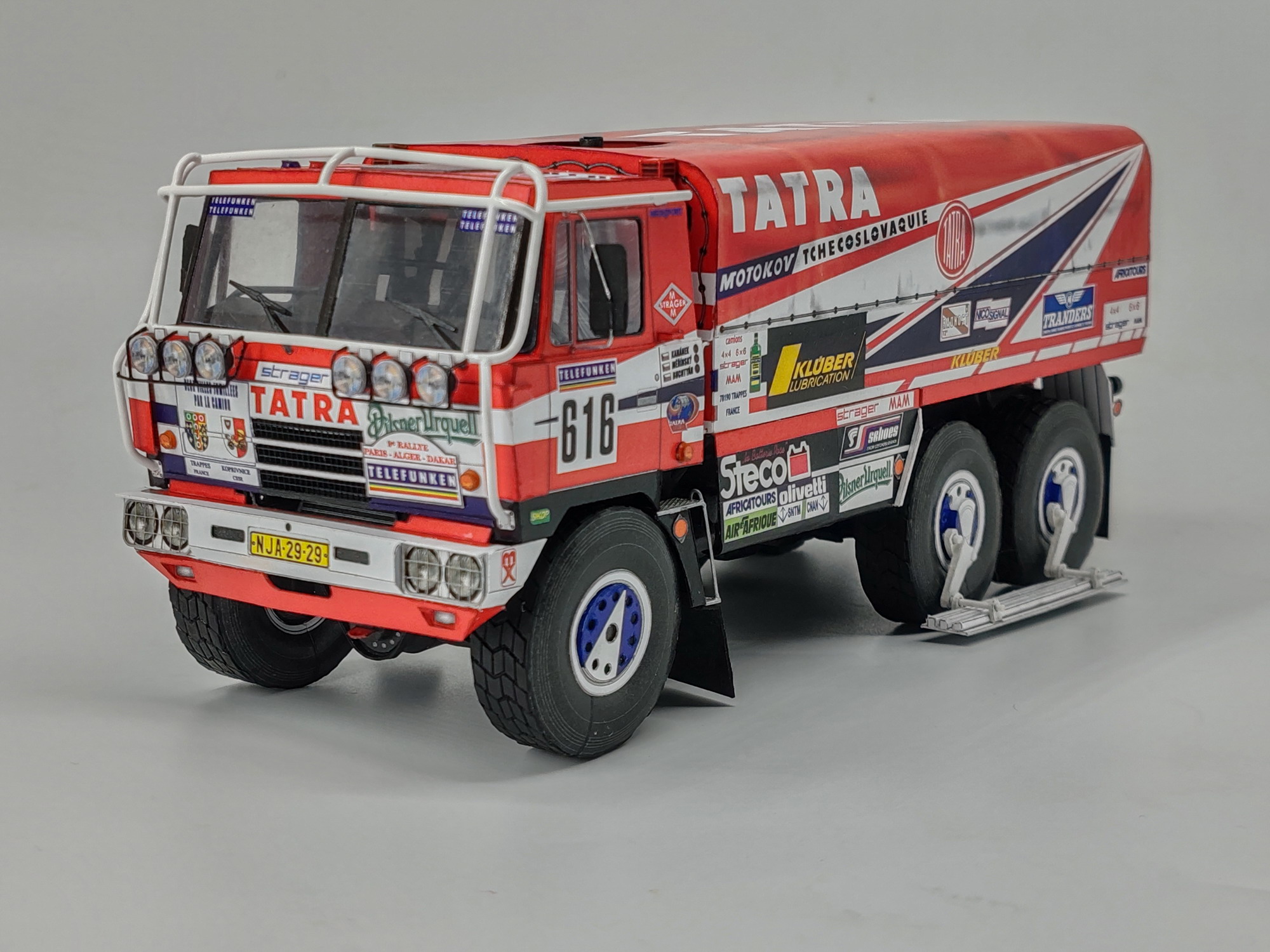 Vy si můžete variantně sestavit tatrováckou šestikolku buď v plném zbarvení se startovními čísly (posádka Zdeněk Kahánek, Ota Měřínský a Vlastimil Buchtyar) a všemi reklamami, nebo jako čistou, předsoutěžní verzi (dokonce ještě se starou SPZ). K oběma verzím si jak doplněk můžete sestavit legendární tatrovácká šlapadla a sami si určíte , v jaké poloze budou nasazena zrovna na té "Vaší" šestikolce.